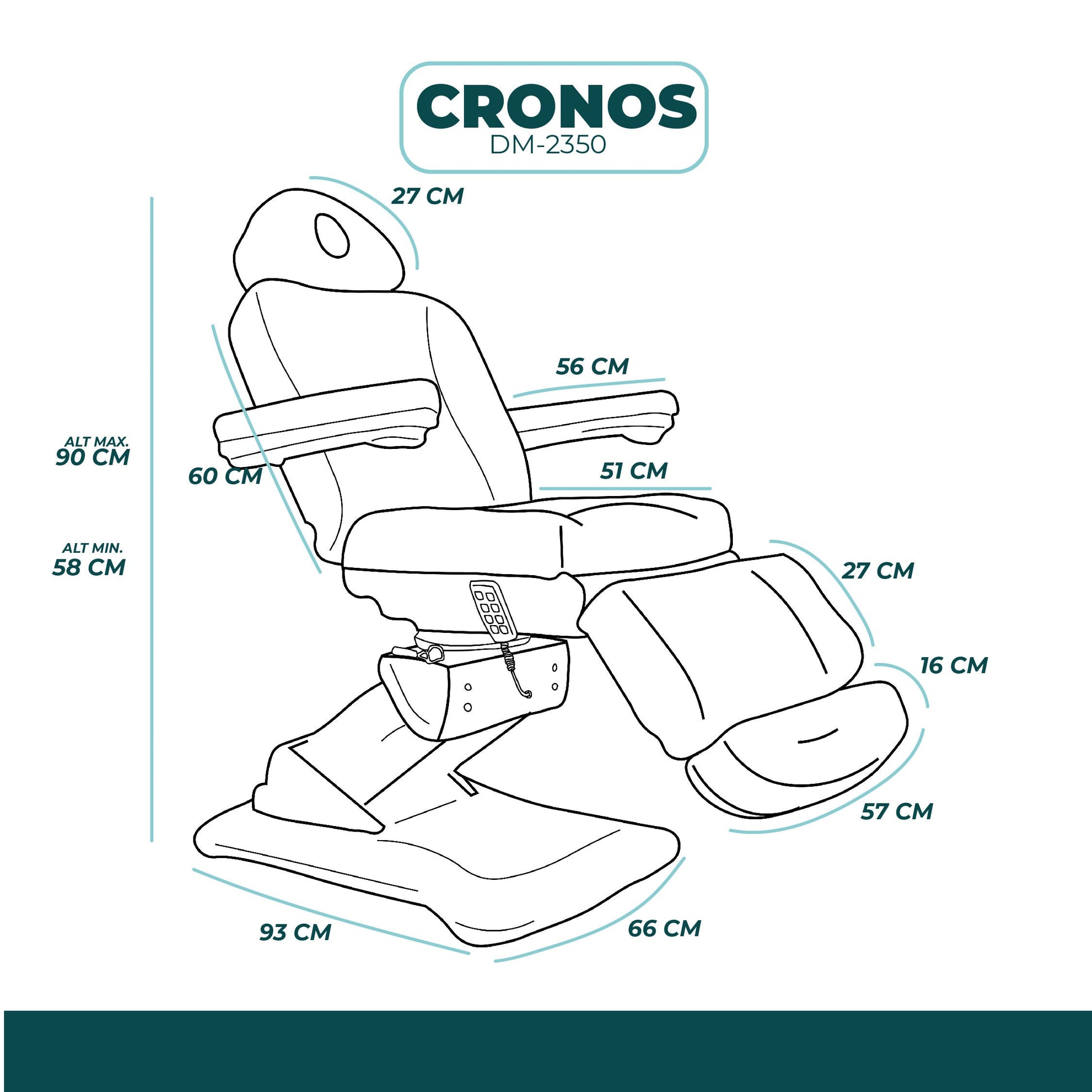 Nuestra camilla modelo cronos, es una camilla eléctrica que opera con 4 motores independientes: